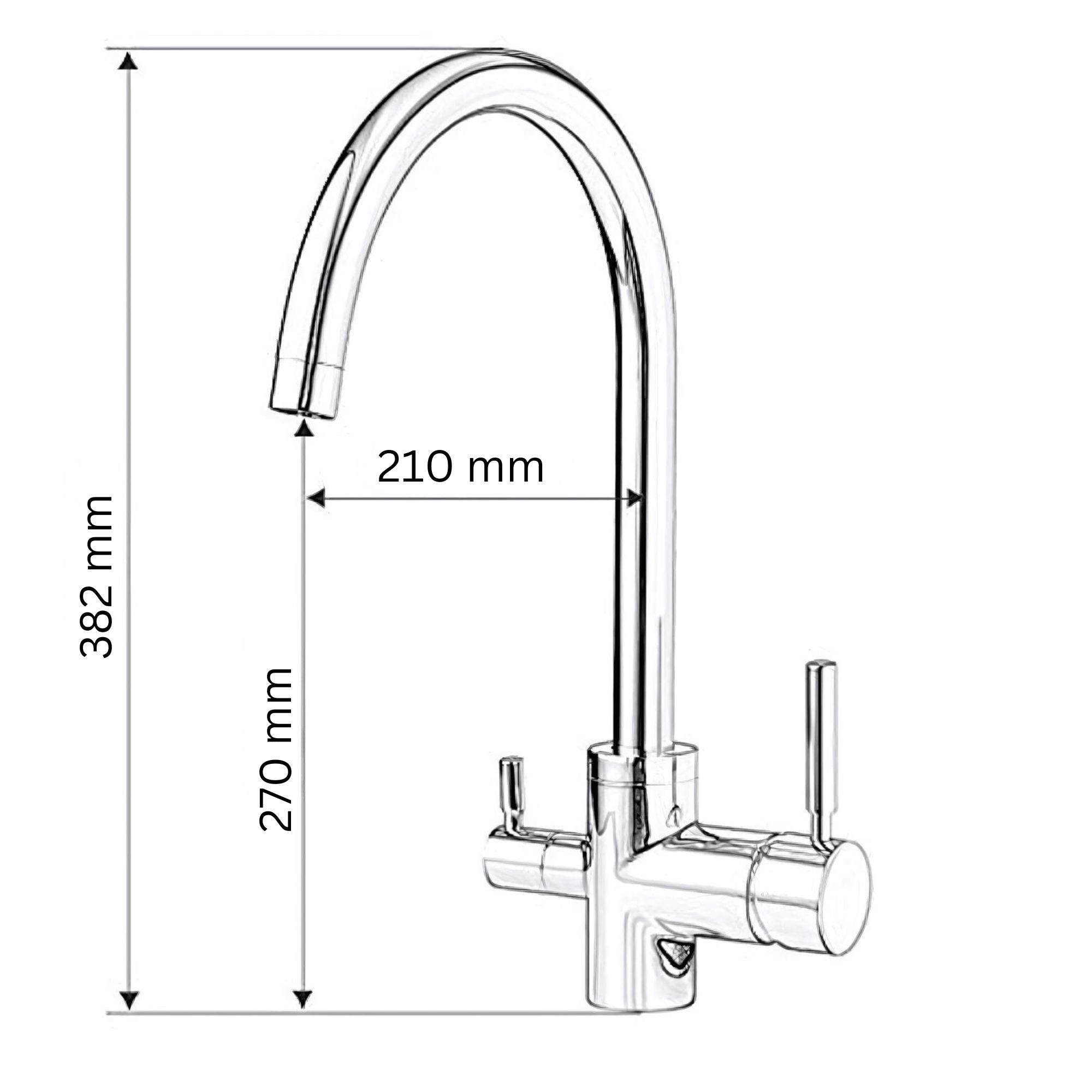 Anschlüsse: 2x Panzerschlauch (Leitungswasser) 1x Kunstoffschlauch Ø 6mm (gefiltertes Wasser)